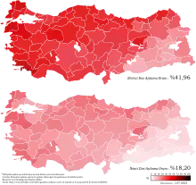 The resulting wave of infections never came close to overwhelming the Turkish health system,[5] which has the highest number of intensive care units[7] in the world at 46.5 beds per 100,000 people (compared to 9.6 in Greece, 11.6 in France, and 12.6 in Italy). As of 3 May 2021, Turkey's observed case-fatality rate stands at 0.84%, the 148th highest rate globally.[8][9] This low case-fatality rate has generated various explanations including the relative rarity of nursing homes,[10] favorable demographics,[11] long legacy of contact tracing,[12] high number of intensive care units,[13] universal health care,[12] and a lockdown regime that led to a higher proportion of positive cases among working-age adults.[5] However, according to an August 2020 academic study by The International Journal of Health Planning and Management, the government of Turkey has been underreporting COVID-19 statistics.[14]