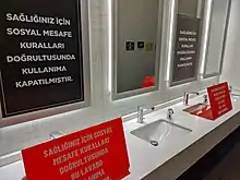 Turkish cities carried out massive disinfection work in public places and mass transit vehicles. In Istanbul, the municipality decided to install hand sanitizers at stations of metrobuses.[5]