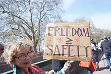 ![]() Anti-lockdown protest march in London, April 2021 | |