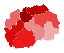 On 22 March, 29 new cases were confirmed positive: 22 in Skopje, 3 in Štip, 2 in Debar, 1 in Ohrid, and 1 in Kumanovo.[43] On 22 March, North Macedonia recorded the first fatality, а 57-year-old woman from Kumanovo that was confirmed positive to the virus postmortem.[44]