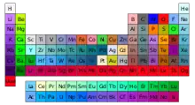 The following table shows colors assigned to each element by some popular software products. Column C is the original assignment by Corey and Pauling,[1] and K is that of Koltun's patent.[2] Column J is the color scheme used by the molecular visualizer Jmol.[5] Column R is the scheme used by Rasmol; when two colors are shown, the second one is valid for versions 2.7.3 and later.[5][6] Column P consists of the colors in the PubChem database managed by the United States National Institute of Health. All colors are approximate and may depend on the display hardware and viewing conditions.