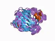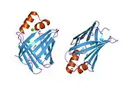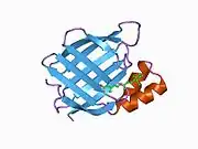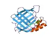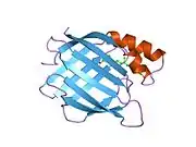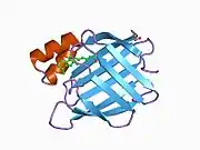 - Thompson JR, Bratt JM, Banaszak LJ (Sep 1995). "Crystal structure of cellular retinoic acid binding protein I shows increased access to the binding cavity due to formation of an intermolecular beta-sheet". Journal of Molecular Biology. 252 (4): 433–46. doi:10.1006/jmbi.1995.0509. PMID 7563063.