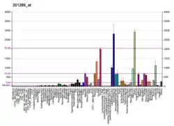 CYR61 is a secreted, extracellular matrix (ECM)-associated signaling protein of the CCN family (CCN intercellular signaling protein).[6][7] CYR61 is capable of regulating a broad range of cellular activities, including cell adhesion, migration, proliferation, differentiation, apoptosis, and senescence through interaction with cell surface integrin receptors and heparan sulfate proteoglycans. During embryonic development, CYR61 is critical for cardiac septal morphogenesis, blood vessel formation in placenta, and vascular integrity. In adulthood CYR61 plays important roles in inflammation and tissue repair, and is associated with diseases related to chronic inflammation, including rheumatoid arthritis, atherosclerosis, diabetes-related nephropathy and retinopathy, and many different forms of cancers.