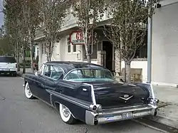 In 1956, there was a new grille, with finer textured insert, and the repositioning of the parking lights in the bumpers, below the wing guards. Buyers were given an option of the standard satin finish grille or an optional gold finish. Cadillac script was found on the left side. A narrow chrome molding and nine vertical louvers were seen. The Coupe de Ville had a model nameplate and a Cadillac crest on the sides of the front fenders. The Coupe de Ville was joined by the Series 62 Sedan de Ville, Cadillac's first standard production 4-door hardtop.[4][8] Similarly to the Coupe de Ville, it was also more expensive and more luxuriously trimmed that the standard 4-door Series 62.[4][8] With 41,732 sold, it also easily outsold the Series 62 sedan in its very first year.[4][8] Given their sales success, it was only natural that the Coupe de Ville and Sedan de Ville were moved to their own separate series in 1959, the Series 6300, being joined by a De Ville convertible in 1964.[4][8] The Eldorado subseries also gained a new bodystyle, a 2-door hardtop called the Seville. An Eldorado script finally appeared with fender crest on the car which was further distinguished by a twin hood ornament. Extras featured on the Eldorado convertible, now known as the Biarritz in order to distinguish it from the Seville, were a ribbed chrome saddle molding extending from the windshield to the rear window pillar along the beltline and flat, pointed rear fender fins. Power steering was now standard.[14] The turning circle was 43.5 ft. wide and ground clearance is 8.25 inches.[15] Popular Mechanics rated a 0-60 mph time of 12.0 seconds, fuel economy for a traffic route at 8.3mpg, and a very accurate speedometer.[16]