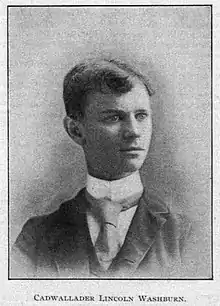 Cadwallader Lincoln Washburn was born October 13, 1866, in Minneapolis, Minnesota.[1] He was born into a wealthy family, the son of William Drew Washburn and the grandson of Israel and Martha Washburn.[2] He became deaf at age five after contracting scarlet fever and spinal meningitis.[1] He was a student at the Minnesota State Academy for the Deaf and graduated in 1884.[3]