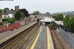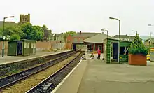 Caerphilly railway station (Welsh: Gorsaf reilffordd Caerffili) is a railway station serving the town of Caerphilly, south Wales. It is a stop on the Rhymney Line of the Valley Lines network. The station is located at Station Road in the south of the town. Facilities include a small shop and a ticket kiosk. A self-service ticket machine was installed near the entrance to the station on 22 December 2008. Several advertising murals depicting holiday travel in various parts of South Wales have been placed on the northbound side of the station in order to improve the 'look' of the station.[1]