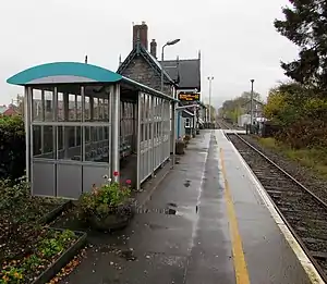 Caersws railway station is a railway station on the Cambrian Line in mid-Wales, serving the village of Caersws. It is notable that there is a distance of 22 miles (35 km) between this station and Machynlleth, the longest distance between two intermediate stations in Wales.[3]