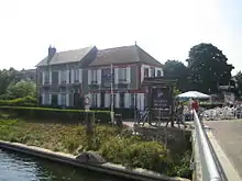 At the time of these events the café was run by Georges and Thérèse Gondrée. They had been involved in the French Resistance, and had passed on information about the defenses around the bridge to British intelligence through the French underground.[3] The successful taking of the bridge played an important role in limiting the effectiveness of a German counter-attack in the days and weeks following the Normandy invasion. With the passing of the Gondrées, ownership was taken over by their daughter, Arlette Gondrée, who was a little girl of 5 at the time of their liberation.[4] A determined, fiery woman, she is famously referred to simply as "Madame".[5]