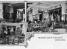 The Café Stefanie was a coffeehouse in Munich which around the 1900s till the 1920s was the leading artist's meeting place in the city, similar to the Café Größenwahn atmosphere of the Café des Westens in Berlin and the Café Griensteidl in Vienna.[1][2][3][4] The cafe was located on the corner of Amalienstraße and Theresienstraße in the Maxvorstadt not far from the Simplicissimus cabaret and Die Elf Scharfrichter. At the time it was one of the few establishments in Munich which stayed open till 3:00 in the morning.