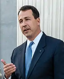 James Calvin "Cal" Cunningham III (born August 6, 1973) is an American lawyer, politician, and retired military officer. A member of the Democratic Party and a lieutenant colonel in the United States Army Reserve, he served one term as a North Carolina state senator from 2001 to 2003. Having previously run for United States Senate in a 2010 primary, Cunningham was the Democratic nominee[1] for the 2020 U.S. Senate election in North Carolina, losing to incumbent Republican Thom Tillis.[2]