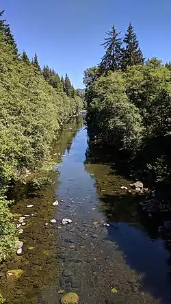![]() Calawah River, looking upstream from the US Highway 101 bridge | |