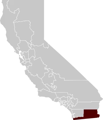 The district runs along the entire border between California and Mexico. The heavily Latino district includes urban San Diego neighborhoods in the west and rural Imperial County farmland in the east.
