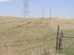 California Hill is a hill in Nebraska, and the first major hill ascended by emigrants on the Oregon Trail.[2][3] East of O'Fallon's Bluffs, the trail begins to turn southward along the South Platte River. The migrants had to make a decision of where to cross the river and then over the divide between the north and south branches. The North Platte River was the preferred route towards Fort Laramie and Casper, Wyoming. A variety of crossings were used, but the most often chosen was named the California Crossing. Having travelled 53 miles (85 km) west of O'Fallon's Bluffs this crossing was the most direct Ash Hollow and the North Platte River. While shallow, the South Plattes sandy bottom created a major obstacle for heavy wagons. Quicksand and moving water were the cause of wrecks, drownings, and deaths from exposure. This was accentuated as the main crossing season was in May and early June and the rivers became swollen from the spring melt in the mountains.[4] Once over, the emigrants faced California Hill. This climb of 240 feet (73 m) was over a 1.5 kilometres (0.93 mi) before reaching the plateau that stretched between the two forks of the Platte rivers. While not as steep as the hills ahead of them on the trail, this was the first major hill that they faced.[4]