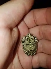 The California toad is less blotched (reduced dorsal melanin) than the boreal toad. It has a wider head, larger eyes, smaller feet, and a weaker development of the margins along the dorsal stripe. The largest western toad larvae at 56 mm is also of the California toad. The toad has a wide range of dorsal coloration, from light gray to green to dull black; most however are brownish gray. The California toad, as a western toad, walks rather than hops [3] The adult size range is two to five inches.[4]