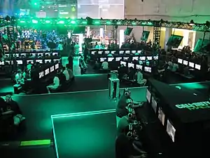 Call of Duty: XP 2011 was held in Los Angeles from September 2–3, 2011. It was hosted in and around a 12-acre hangar, once owned by Howard Hughes, at 5600 Campus Center Drive, Playa Vista, California.[3][4] The hangar was outfitted with flat screen TVs and monitors, speakers, projectors, and (being sponsored by Xbox) Xbox 360s.[5] It was also adorned with Call of Duty props and replicas from the franchise. Outside the hangar, several fan attractions were set up. One of the activities was the paintball course that was modeled after the multiplayer level "Scrapyard" from Call of Duty: Modern Warfare 2.[6] Jeep sponsored the event by adding the "Jeep Ops Experience" in which attendees rode in Jeeps that navigated through an obstacle course.[7] Activision erected a replica of Burger Town from Call of Duty: Modern Warfare 2. There they served guests an array of fast food.[8] It also included a life-size replica of Call of Duty: Modern Warfare 2's MOUT, "The Pit", where fans could try running through the training course.[9] Other attractions included a zip-line and juggernaut sumo wrestling.