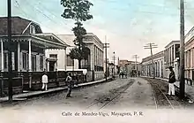 Calle Méndez Vigo (Mendez Vigo Street) is a major thoroughfare in the western Puerto Rico municipality of Mayagüez with a length of about 1.22 miles (2 km). The street is oriented east–west with traffic running one-way westbound with the number of lanes going from one to two after the road passes Calle Ramón Emeterio Betances (formerly Post Street) in downtown Mayagüez.[1] Some of the most important historical places in Mayagüez are located on this street: