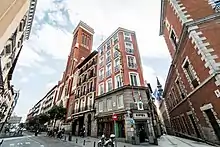 Along the initial stretch, closer to the royal palace, chiefly residential housing was erected, with some later conventual additions.[1] Meanwhile, the lower, southeasternmost end of the street was chiefly purposed for Hospital buildings already since the foundation of the Hospital of Antón Martín in the mid-16th century.[1] Linked since ancient times to the Spanish Crown,[4] it was the regular route of the traditional royal weekly ceremonies with the monarchs moving to the Sanctuary of Atocha.[5]