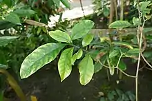 Callichilia barteri grows as a shrub up to 3 metres (9.8 ft) tall. Its fragrant flowers feature a white corolla. Fruit is yellow to orange with paired follicles, each up to 5 centimetres (2.0 in) long. Habitat is in forests. Local medicinal uses include as a treatment for gonorrhoea and as an anthelmintic and childhood laxative.[2] C. barteri is found in Togo, Benin, Nigeria, Cameroon, the Republic of Congo and the Democratic Republic of Congo.[3]