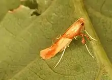 Caloptilia alchimiella (commonly known as yellow-triangle slender)[1] is a moth of the family Gracillariidae. It is found in Europe and the Near East.[2]