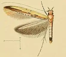The larvae feed on Apollonias barbujana, Laurus azorica, Persea americana and Persea indica. They mine the leaves of their host plant. The mine consists of a lower-surface, epidermal corridor, reminding of a snail's trail. In the end, the mine widens into a full depth tentiform mine, with loosely dispersed frass. Older larvae live freely in a leaf cone. Mines are only made on the youngest leaves. Pupation takes place in a shining yellow cocoon.[2]
