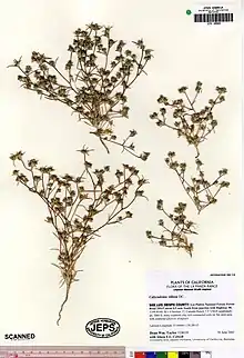 Calycadenia villosa is an uncommon species of flowering plant in the family Asteraceae known by the common name dwarf western rosinweed. It is endemic to central California, where it is known from a limited distribution in the Central Coast Ranges in Monterey County and San Luis Obispo County, with a few populations in Santa Barbara and western Fresno Counties.[2] There are perhaps 16 occurrences.[3][4][5]