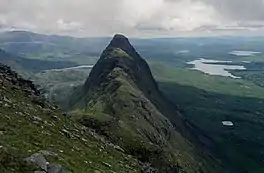 ![]() Looking from Suilven, past the middle summit of Meall Meadhonach to Cam Loch in the distance. | |