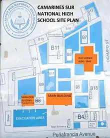 The Camarines Sur National High School, also called Cam High, is the oldest national high school in Camarines Sur and one of the biggest public secondary schools in the Bicol Region, Philippines having a student population of 10,795 in the school year 2017–2018.[1] It was established in 1902.[2]