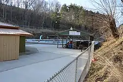 Cameron City Pool-PWA Project 1196 is a historic swimming pool located at Cameron, Marshall County, West Virginia. It was built in 1939, with a grant from the Public Works Administration. It consists of a semi-circular pool with underwater lifeguard station, and a wooden bath house. It incorporates a beach area and is recognized as a potential fire fighting emergency water reserve.[2]