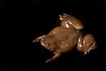 The Cameroon clawed frog (Xenopus epitropicalis) is a species of frog in the family Pipidae found in Angola, Cameroon, the Central African Republic, the Republic of the Congo, the Democratic Republic of the Congo, Equatorial Guinea, Gabon, and possibly Sudan. Its natural habitats are subtropical or tropical moist lowland forests, freshwater marshes, intermittent freshwater marshes, heavily degraded former forest, and ponds. It is threatened by habitat loss.[1]