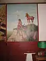 The club room features one of Wyoming's 20th-century treasures, sixteen murals painted by three Italian prisoners-of-war during 1943–1944. The charmingly rendered murals painted directly on the celotex walls depict icons of the mythical American west: cowboys, Indians, wagon trains, cattle drives, a stockade fort, and even the famous Old Faithful geyser in Wyoming's Yellowstone National Park. The murals gain special significance for the very reason that they are a vision of the west created by three Italians who had most likely only seen the fabled American West through a train window. The images they created were no doubt inspired from American movies and books.