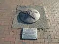 The former site of Eisenhower's office is laid out in brick, with a memorial to SHAEF and a flagpole.