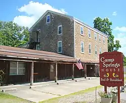 Camp Springs House was built in the 1860s for William Uthe by the Ort brothers. It is built of rubble limestone from the creek and surrounding land. It took about 4 years to build. It served as a stagecoach stop, tavern and inn. At one time it also served as a post office for the community. Over the years it has been a gathering place for the community. The 2nd floor once had a dance hall and card room. It was also popular for its beer garden and horseshoe tournaments. In the 1900s there was a ball field, restaurant/bar and pool hall.