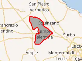 ![]() Campi Salentina Location of Campi Salentina in Italy ![]() Campi Salentina Campi Salentina (Apulia) | |