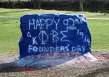 Another landmark is the spray painted boulder known as "The Rock". Lying east of Farm Lane just north of the river, it is a popular spot for campus events such as outdoor summer theatre, Greek house tailgating, and candlelight vigils. It was once used by Michigan Agricultural College (forerunner to MSU) students to study mineral contents.[16] MSU has several botanical gardens, including the W. J. Beal Botanical Garden just across the river from the stadium, the Old Horticulture Gardens next to the building of the same name, the MSU Horticulture Gardens, and the adjoining 4-H Children's Garden.