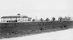 Lovett expressed interest in flat farmland along Main Street north of Brays Bayou. Negotiations by Captain James A. Baker eventually led to a complicated land exchange with local entrepreneur George Hermann (namesake of Hermann Park), who owned 370 acres (150 hectares) on both sides of Main Street.[3] Through the deal and subsequent land exchanges, the Rice Institute had acquired 278 acres (113 hectares) fronting the west side of Main by 1910.[3] The modern 290-acre (120-hectare) campus was not completed, however, until 1921, when a small parcel owned by DuPont was finally acquired.[3]