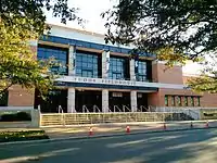 Tudor Fieldhouse, known as Autry Court prior to 2007, is home to the basketball and volleyball teams.[31] Other stadia include the Wendel D. Ley Track & Holloway Field and the George R. Brown Tennis Center. The 120,000-square-foot (11,000 m2), 14-court Tennis Center, located east of Rice Stadium along Rice Boulevard, opened in 2014; it replaced the Jake Hess Tennis Center adjacent to Recking Park, which became the site of the Moody Center for the Arts in 2017.[32]