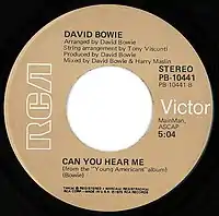 "Can You Hear Me?" is a ballad by English musician David Bowie from his 1975 album Young Americans.[1] Bowie called it a "real love song", written with someone in mind, but he did not identify them.[2] The song was released as a single in November 1975 on the B side of "Golden Years".