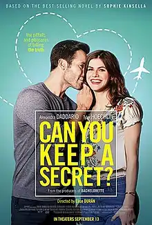 Can You Keep a Secret? is a 2019 American independent romantic comedy film directed by Elise Duran and stars Alexandra Daddario and Tyler Hoechlin. It is based on the 2003 novel of same name by Sophie Kinsella, with the screenplay adapted by Peter Hutchings.[1]