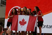 The Canada women's national rugby sevens team was one of six "core teams" that competed in all four rounds of the inaugural World Rugby Women's Sevens Series in 2012–13.[1] Canada competed at the 2016 Summer Olympics and won the bronze medal after defeating Great Britain 33-10.[2] At the 2020 Olympics they failed to medal and finished in 9th place.[3]