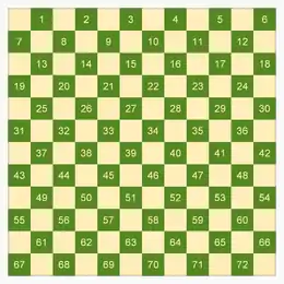 ![]() Canadian checkers board and starting setup; White moves first. Canadian checkers is played on 12×12 board | |