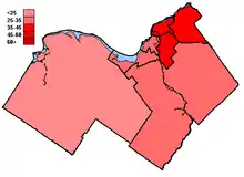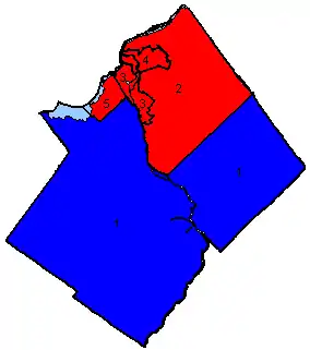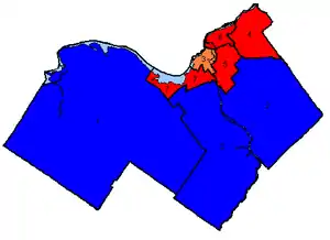![]() Map of the region's ridings in 1984. Colours show the result from the 1984 election |