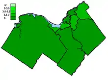 ![]() Map of the region's ridings in 1979. Colours show the result from the 1979 election |