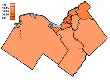 | Representation | West Carleton | Kanata | Goulbourn | Rideau | Osgoode | South Nepean | North Nepean | West Ottawa | Westboro | Central Ottawa | South Ottawa | Alta Vista | Riverview | East Ottawa/Vanier | Rockcliffe | North Gloucester | South Gloucester | Orleans | Rural Cumberland | |||