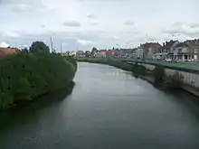 The Canal de Bergues is one of the oldest canals in Flanders, its course being shown on a map dating from the 9th century, connecting Bergues to the port of Dunkerque, in northern France. The town itself, heavily fortified by Vauban in the late 17th century, is the main attraction for boats, which moor in a dramatic location just outside the fortified walls. Commercial traffic ceased in the 1970s. The site acquired worldwide fame in 2008 as the location for the cult film Bienvenue chez les Ch'tis. The local Ch'ti dialect and out-of-tune belfry chimes contributed to making the town a destination for tourists. The canal formerly connected with the Canal de la Basse-Colme heading west to Veurne via the Bergenvaart, and the Canal de la Haute-Colme west to the Canal Dunkerque-Escaut at Lynck. Restoration of these canals would greatly increase the tourism potential of Bergues, but there is opposition from the authority managing the local drainage canals. Bergues remains a there-and-back excursion for visiting boats.[1]