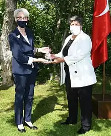 She was awarded the International Women of Courage Award in 2021.[8] She had been nominated by the American ambassador to Turkey in December.[9] The award was presented by the First Lady Dr. Jill Biden and the Secretary of State Antony Blinken on International Women's Day. She was identified as a "steadfast champion of gender equality, working to promote women's participation in governance, the labor force and education".[10] There were fourteen living women given awards that year. The awardees were from fifteen countries as unusually the awards included an extra seven women who had died in Afghanistan.[7]