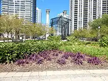 The Richard and Annette Bloch Cancer Survivors Garden was built in 1996 and occupies 2 ¼ acres of land in the Northeast corner of Maggie Daley Park. The garden located in Chicago is one of 24 Cancer Survivor parks across the country built by the Richard and Annette Bloch Cancer Foundation. The R.A. Cancer Foundation primarily funded the garden costing $1.3 million to create.[1] The park is designed to be a celebration of life. It is a safe haven for cancer patients and meant to aid them in their healing process. The three main garden rooms represent the three main states of healing: acceptance, support, and celebration.[2]