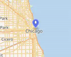 At its entrance are two 40-foot Corinthian columns salvaged from Chicago’s 1905 Federal Building. The columns are on axis with the classical columns of the Field Museum of Natural History located at the far south end of Grant Park.[3] Architect Henry Ives Cobb designed the columns. Before being placed in the Cancer Survivors Garden, the columns were submerged near the Lake Michigan shoreline in 1983 to help reinforce a breakwater.[1] The Chicago Architecture Foundation donated the columns to be placed next to the garden’s main pavilion.