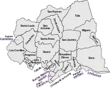 On 15 March 2010, by the Act of Ley Nº 18.653,[6] the following Municipalities were formed in the Canelones Department: