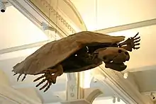 In 2020 Cadena and colleagues described new specimens of Stupendemys geographica, in the process synonymizing both S. souzai and Caninemys with this genus on the basis of lower jaws found in the same area as Stupendemys fossils.[3] Later finds of additional Caninemys material (shells and skulls) as well as new undisputed Stupendemys skull material helped re-establish Caninemys as a valid genus. The new material was discovered in the Colombian La Victoria Formation in the Tatacoa Desert.[2]