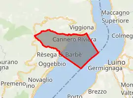 Cannero Riviera ([càn-ne-ro]; in Western Lombard Càner), is a comune (an Italian municipality) with a population of 973 and an area of 14.46 square kilometres (5.58 sq mi) in the Province of Verbano-Cusio-Ossola in the Italian region of Piedmont. The settlement is situated on the western shore of Lago Maggiore; it is about 130 kilometres (81 mi) northeast of Turin about 15 kilometres (9 mi) northeast of Verbania and a similar distance from the Italian-speaking, Swiss Canton known as the Ticino.